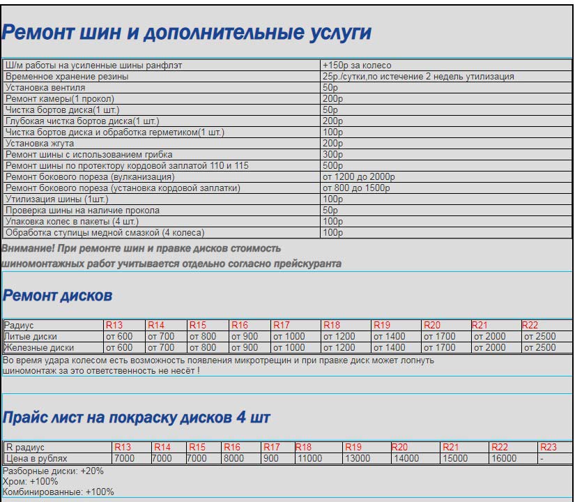 Профессиональный шиномонтаж Сезонное замена резины (4 колеса R13 = 1500 руб.) |